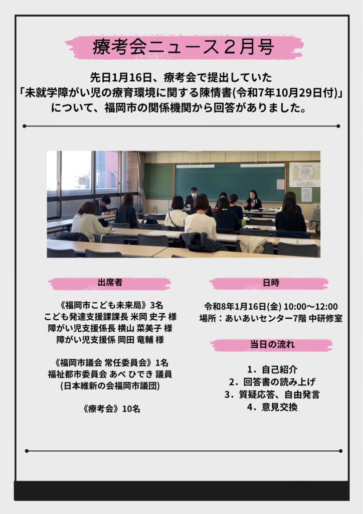 2026/02/24 お知らせ 2026年2月 療考会ニュース2月号 会員の皆様、平素より当会の活動にご理解とご協力を賜り、誠にありがとうございます。 療考会ニュース2月号を作成致しましたので、ぜひご覧ください。 療考会ニュース2月号→PDFで見る